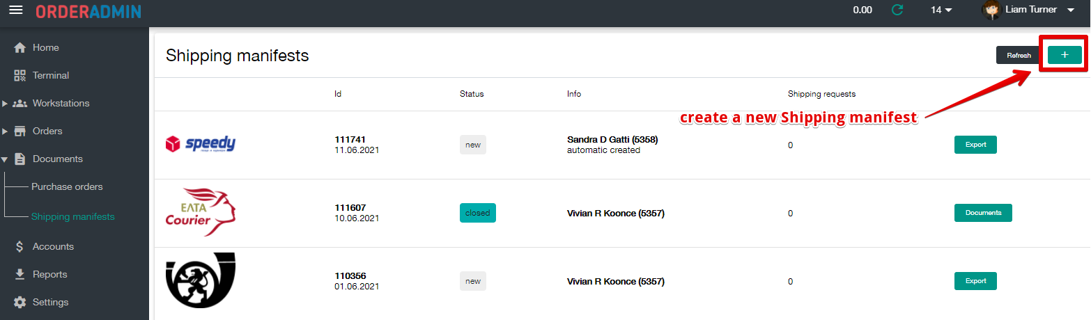 To send orders to the address of the courier service, in some cases it is required to create a document for writing goods, where you can enter all the numbers of orders leaving the warehouse at a time, to the address of the selected courier service. Accordingly, for each courier service, a separate document is created with orders that will be delivered by this courier service.