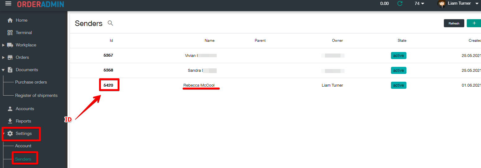 In the ID column Menu -> Settings -> Senders, you will see the ID number of the sender you created: