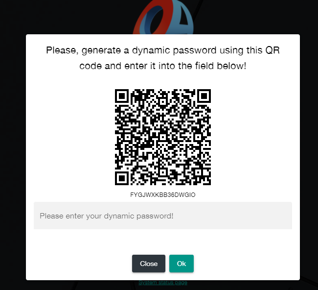 *NOTE: To be able to scan the QR code, you have to install an app on your phone like ''google authenticator'' to scan it and generate a new dynamic password that changes every few seconds.