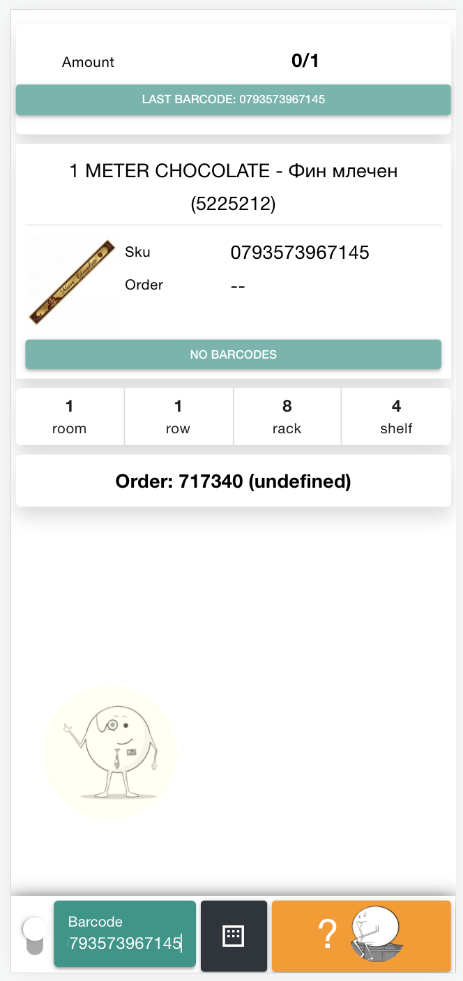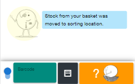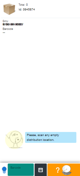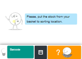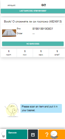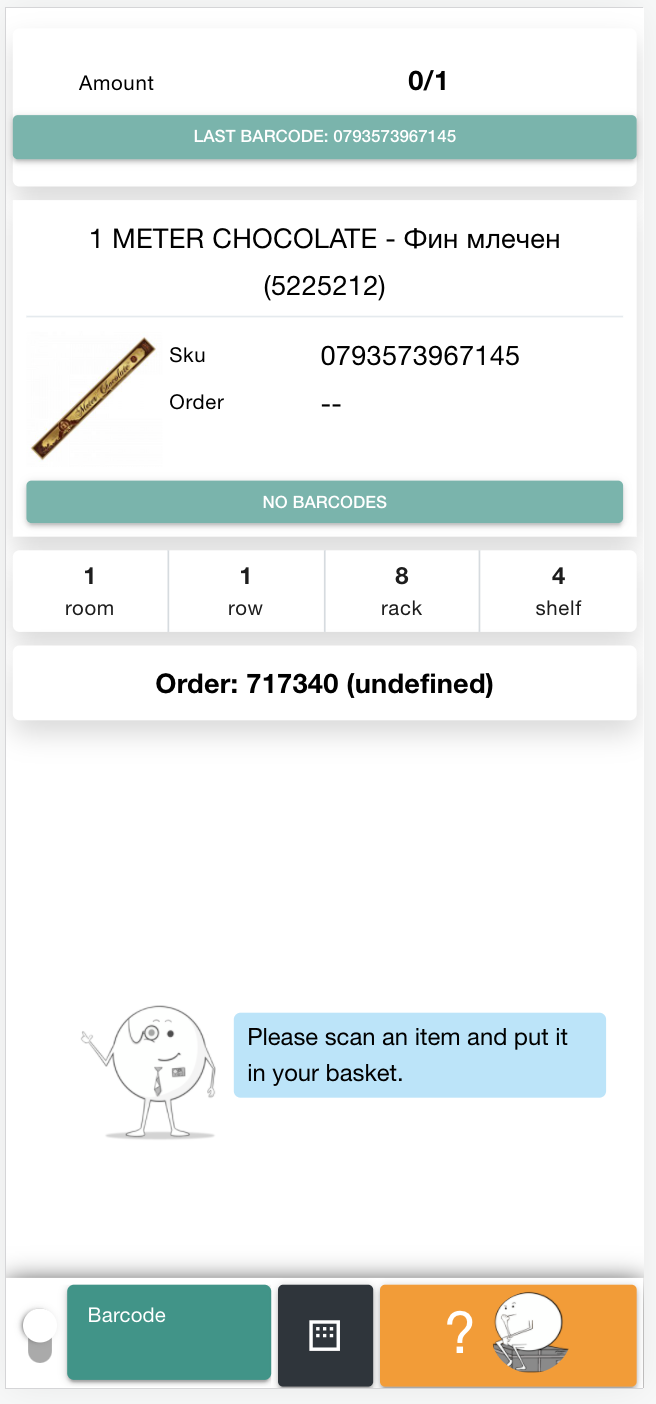 6. Now scan the item to put it in the basket. The SKU code is displayed, the amount along with the place it should be the item.