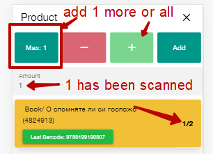 ![]() | Important! If you enter the barcode manually add * sign to the barcode in the end of the string without a space.![]() Scan barcode ![]() | ![]() |
