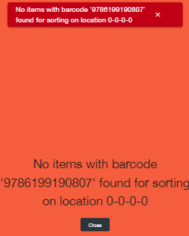 ** If you continue scanning it will show an error because there are no more items on the sorting table!