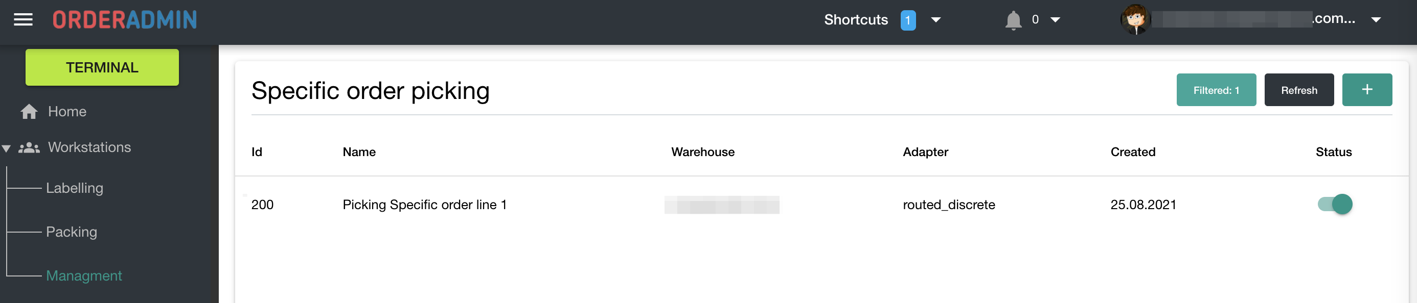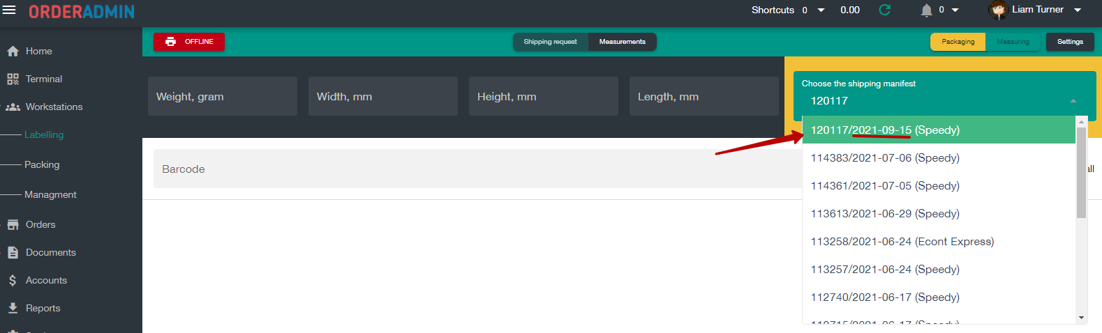 Pic.6. Packing queue created in advance in Menu->Workstations-> Packing.