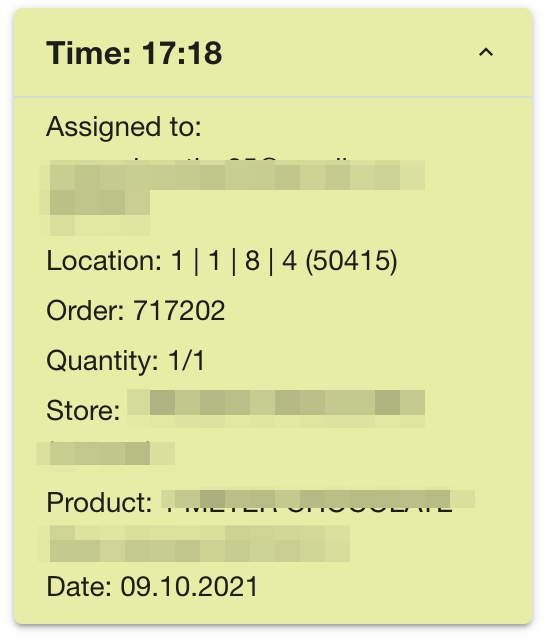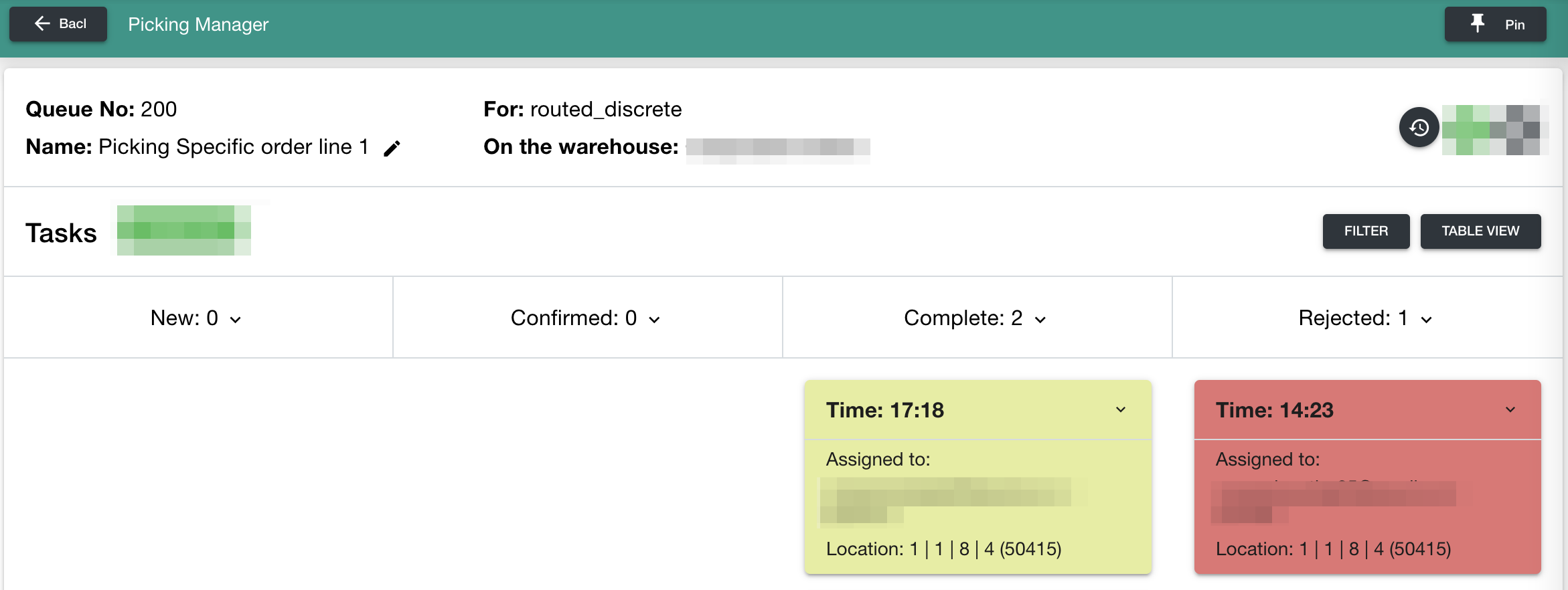 | Distribution type - is a special location, each for every single order, bin, or shelf, where you place a picked item from the portable basket or trolley before a packing process. From this type of location, a Packer will take items for packing. ![]() | Inside the queue, you can watch tasks that are created during the picking process. This is the log of all tasks for all times of using the queue.![]() |