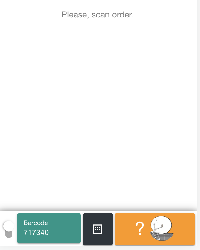 | 4. Scan or enter the Order ID of the Order that you want to assemble. | 5. Please scan any static storage location close to you to create an optimal route for the picking. If you enter the barcode manually don't forget to add * in the end. | 6. OA shows the address of the storage location for items of the order. Go to the location which is shown on the Terminal. Scan its barcode (or tap on a location on the screen). |