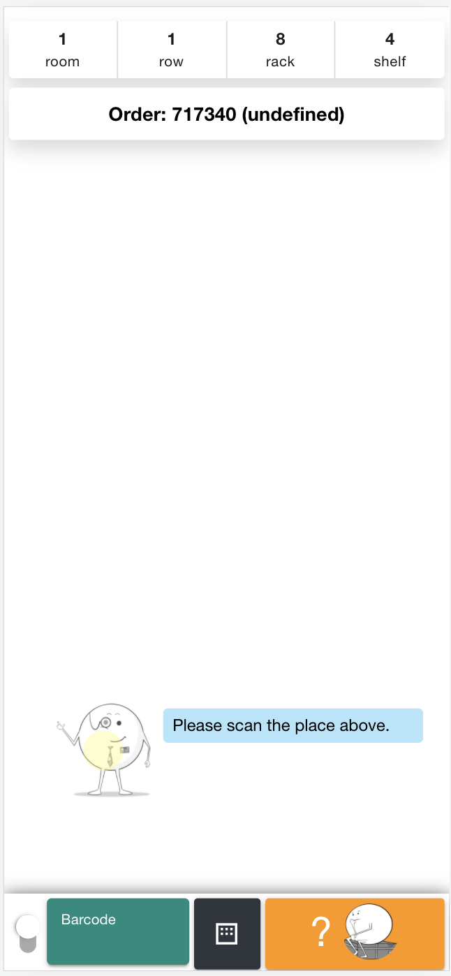 5. Now: ''Please scan any static storage location close to you to create an optimal route for the picking''