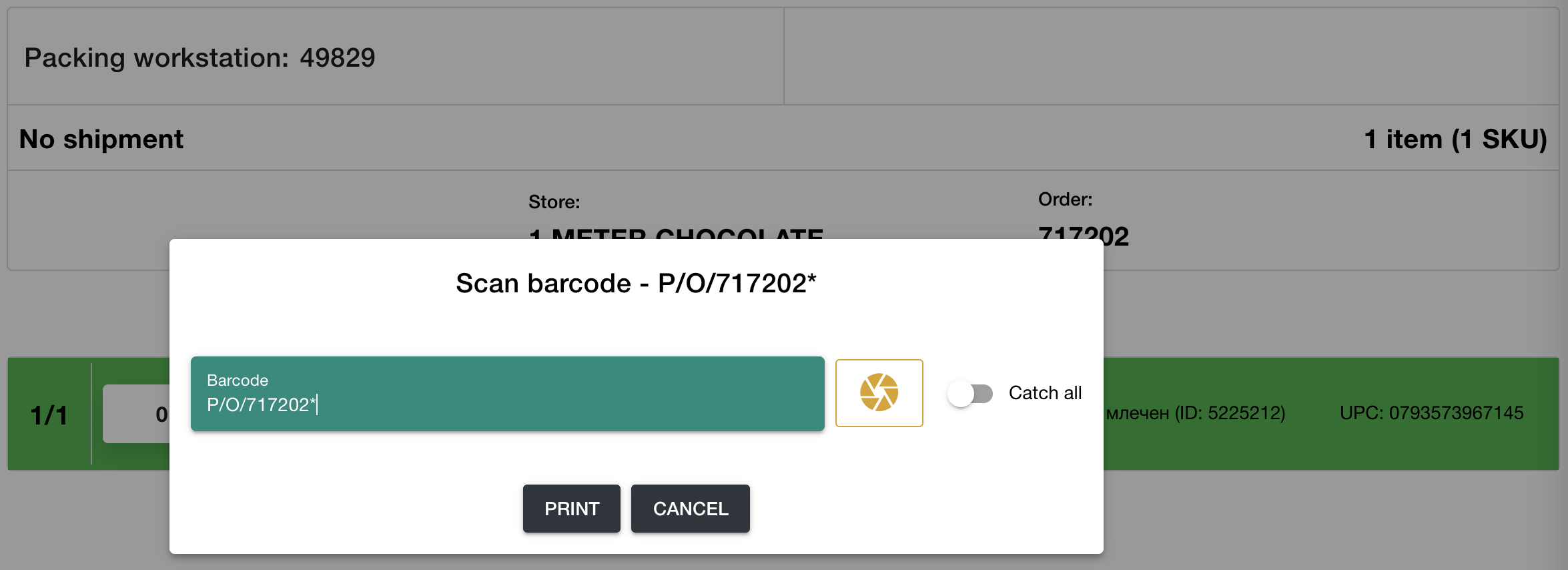 Pic.6 The ID of the packing workstation appears Instead of the message after the barcode is scanned.