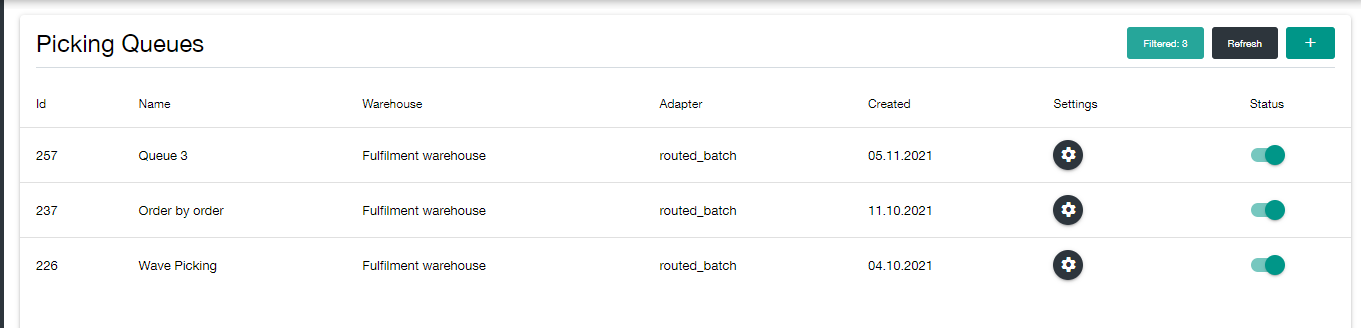 Here you will see the list with all your queues. Click on the button ''+'' in the top right to create a new picking queue.